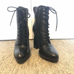 Real Leather heels combat boots never worn in perfect condition!