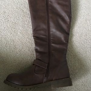 @thrifty_wrenn hi! Perimeter around calf is 16.5 inches. It does not say on the boot genuine leather so I can’t say for sure but they sure seem to be.