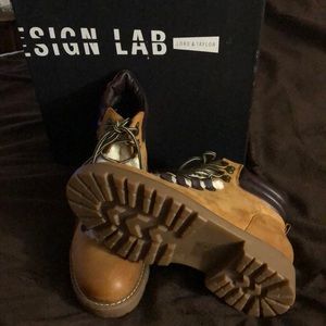 Design Lab high top yellow/tan boots with shearling tongue. New.... never worn....original box