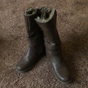 Brown boots like go up to calf height, worn twice. Like new condition, size 9. Fits true to size.
