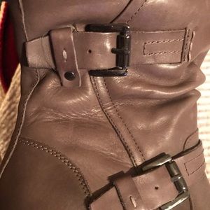 Beautiful, gray leather calf boots, pictures don’t do these high quality boots justice, worn once, light gray leather, fleece lined