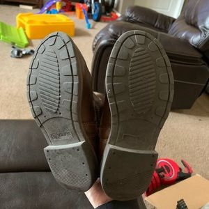 Darker brown boots carters size 13. Some scuffs as shown but small. Smoke free home. No rips holes or stains. Open to bundles and offers as long as the offers reasonable. No low balls please.
