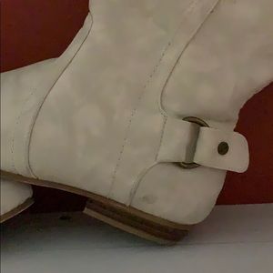 Cream colored over the knee beige suede boot. They make quite a statement! A bit scuffed in places but in very good shape. Very comfortable