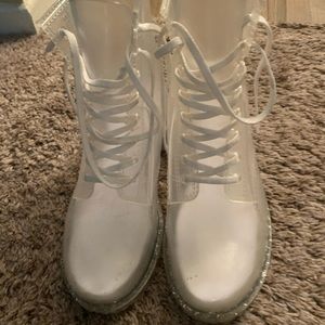 See through boots with glittery sole.
