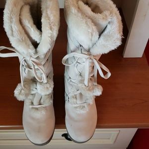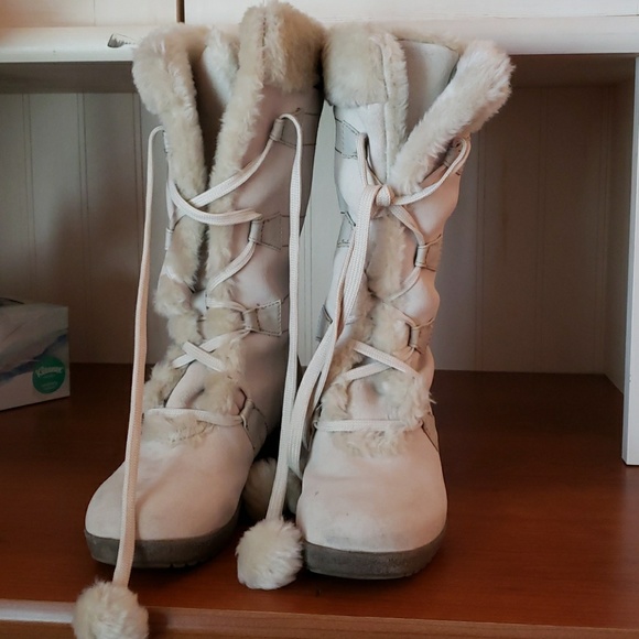 White/cream winter boots leather