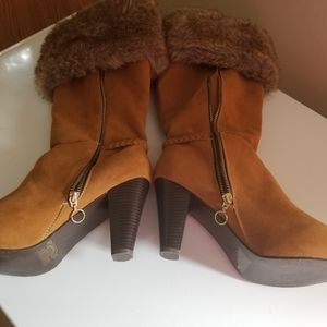 Gently worn faux fur fashion boots