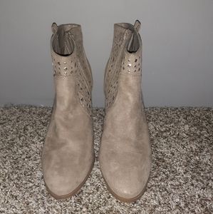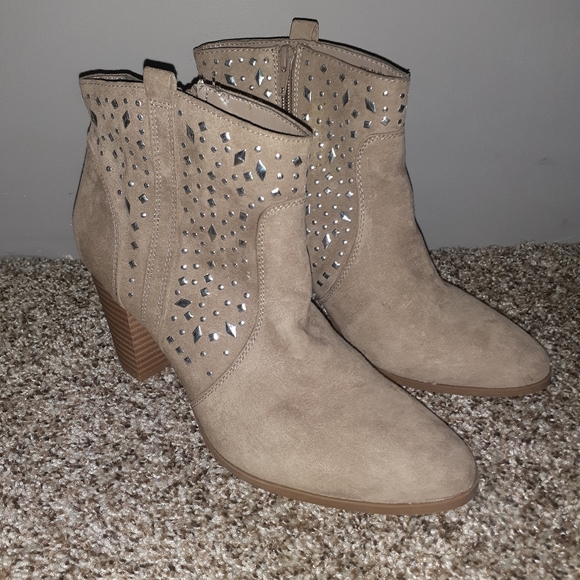 Tan above the ankle boots with silver gem design on the sides