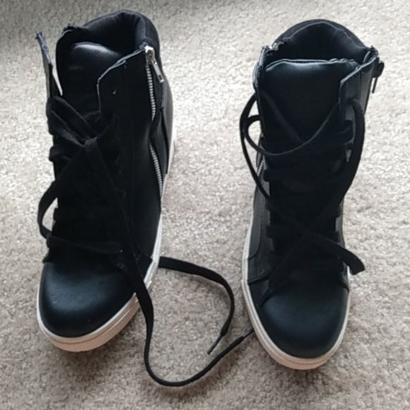 Black. Lace up and zipper on side. Never worn. New without tags.