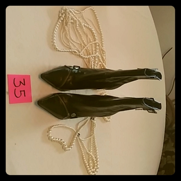 Low black boot silver zippers on the side and across the front great shape Shipping and handling not included