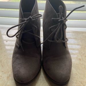 Tan suade booties, lace up. Size 8.5 but can fit a size 8 fairly well. Have been wore few times.
