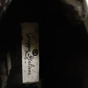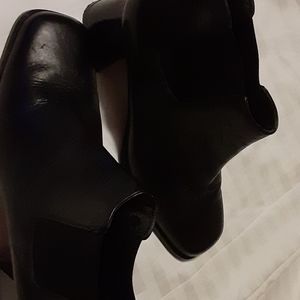 Black leather 2.25 inch square heels slip own no zipper. Lining peeling good condition