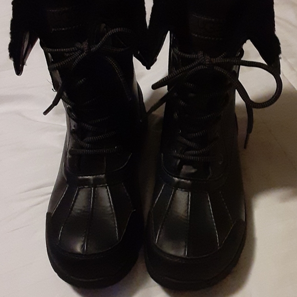 Black leather waterproof boots laceup size 6 made in Vietnam Excellent condition