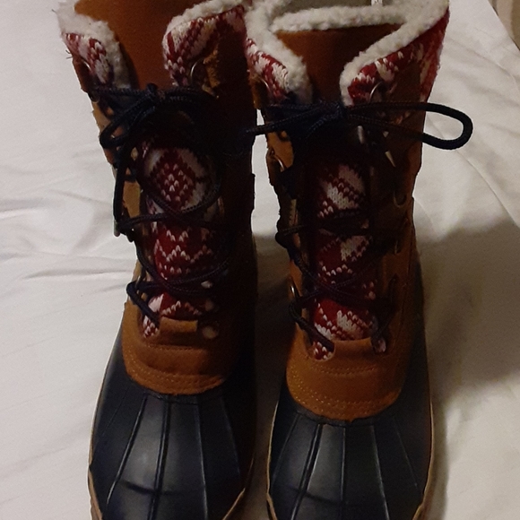 Suede rubber water winter boots lace ups COMFORT made in China VAIL#0812-1805 multi colored Camel navy Red/White