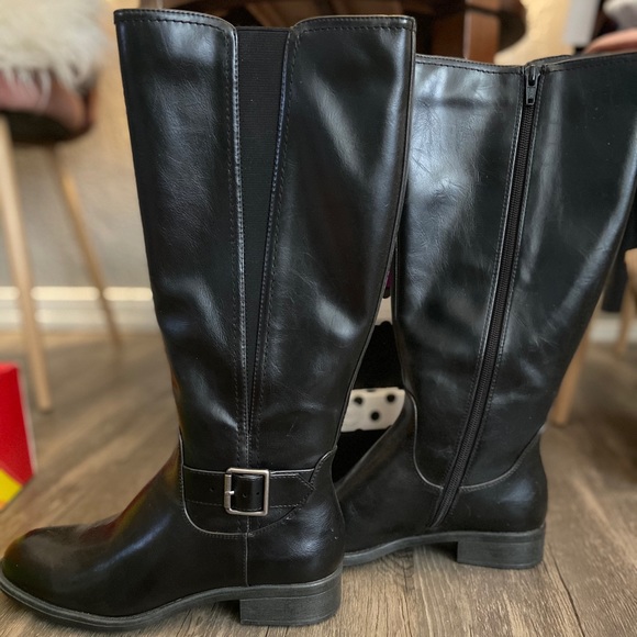 How high is the boot shaft (not including the heel), and how wide are they in the calf?
