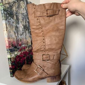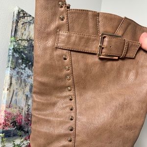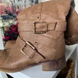 Tan boots Gold buckle and stud details Size 7.5 I think I got these from Charlotte Russe I would be happy to accept your best offer! 💗