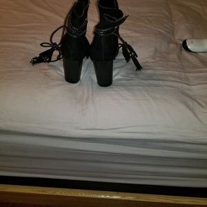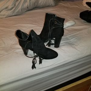Suede like boots black with tassle tie perfect condition block heel size 8.5 all offers open
