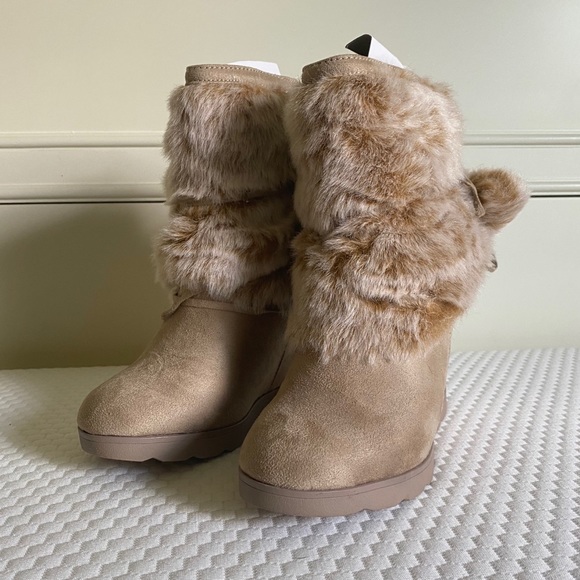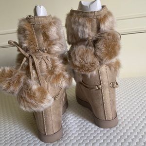 Cute velvet faux fur stylish boots with wrap around ties. Super comfy, inside also has faux fur for extra comfort. Never worn: NWOT