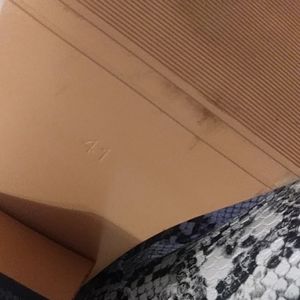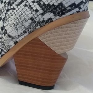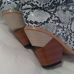 Cowboy like snakeskin boots with tan heel and designed with a cut in the heel ..size 41 narrow