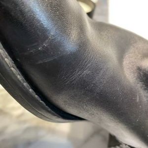 Selling a pair of Bussola brand black leather riding boots that zip up the side in fair condition they have scratches on the front of the boots please see photos for this reason I'm pricing them at $28