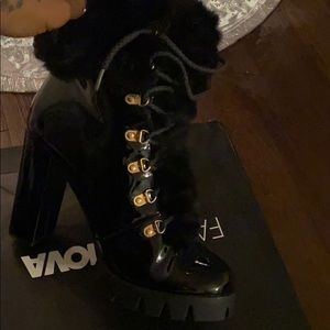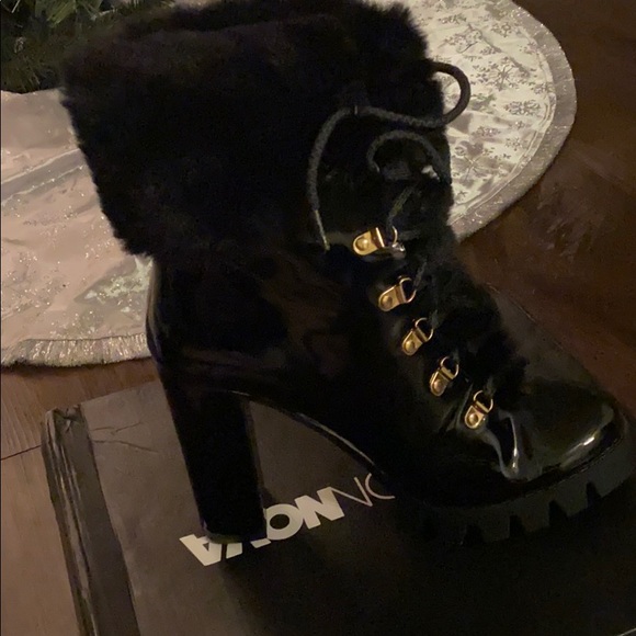 Stylish patent leather heeled boots! Never worn!