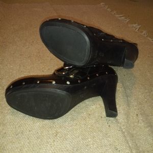 Circa 2006 side zipper vegan leather boots. Worn 3 times. Some wear on left, top of boot, see pic. All silver studs and buckles intact. Stored in my closet at a smoke free home.