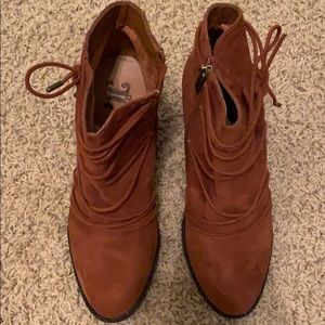 Trendy bootie with sewn in straps on outside