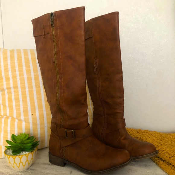 Tall cognac colored boots with detail & buckle on ankle only worn a few times women’s size 6 1/2