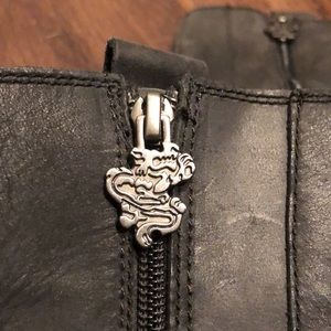 Mark Nason black boots. Dragon stamped on sides of boots and bottom,dragon zipper charm