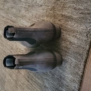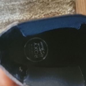 Roxy suede and leather booties. light brown color with black detail around the ankle. they run a bit small I am a true size 6.5 and they are too narrow on the top of my foot. I recommend someone with a very very narrow foot in a 6.5 or a size 6 to purchase these. I absolutely love these boots but I have to sell them because they are just too tight. they are a great boot that go with a multitude of things such as jeans skirts dresses leggings rompers. worn maybe two or three times, perfect pristine condition no imperfections.