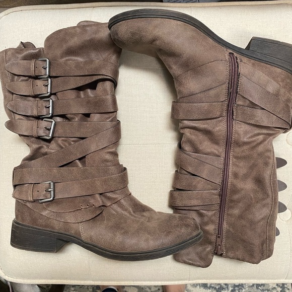 Never worn, mid-calf boots. Size 9, tan color, feels like leather