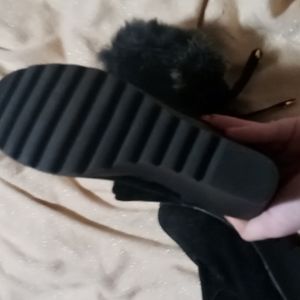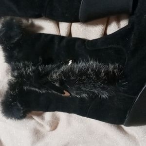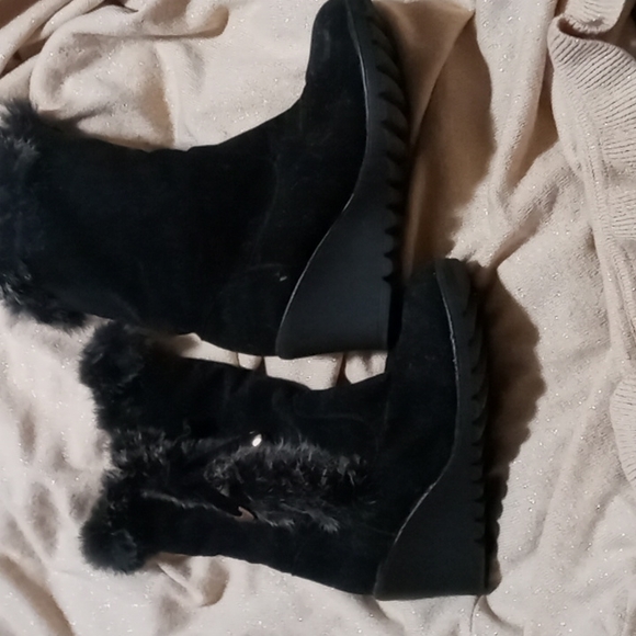 black fur trimmed wedge boots, lined. size 7