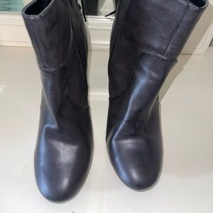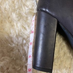 Black heel boots with zippers on the sides and a lace up detail on the back