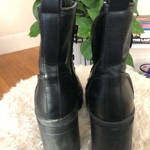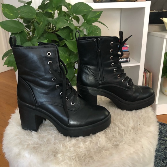 Cute, lace up with zip in side, chunky heel , lug sole combat ankle boots.