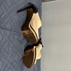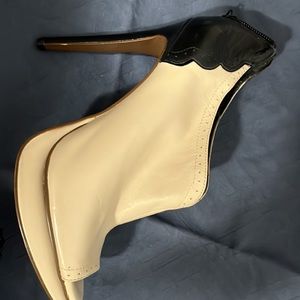 buttery soft cream leather with a stylish black heel. These shoes have very little wear and are in great shape.