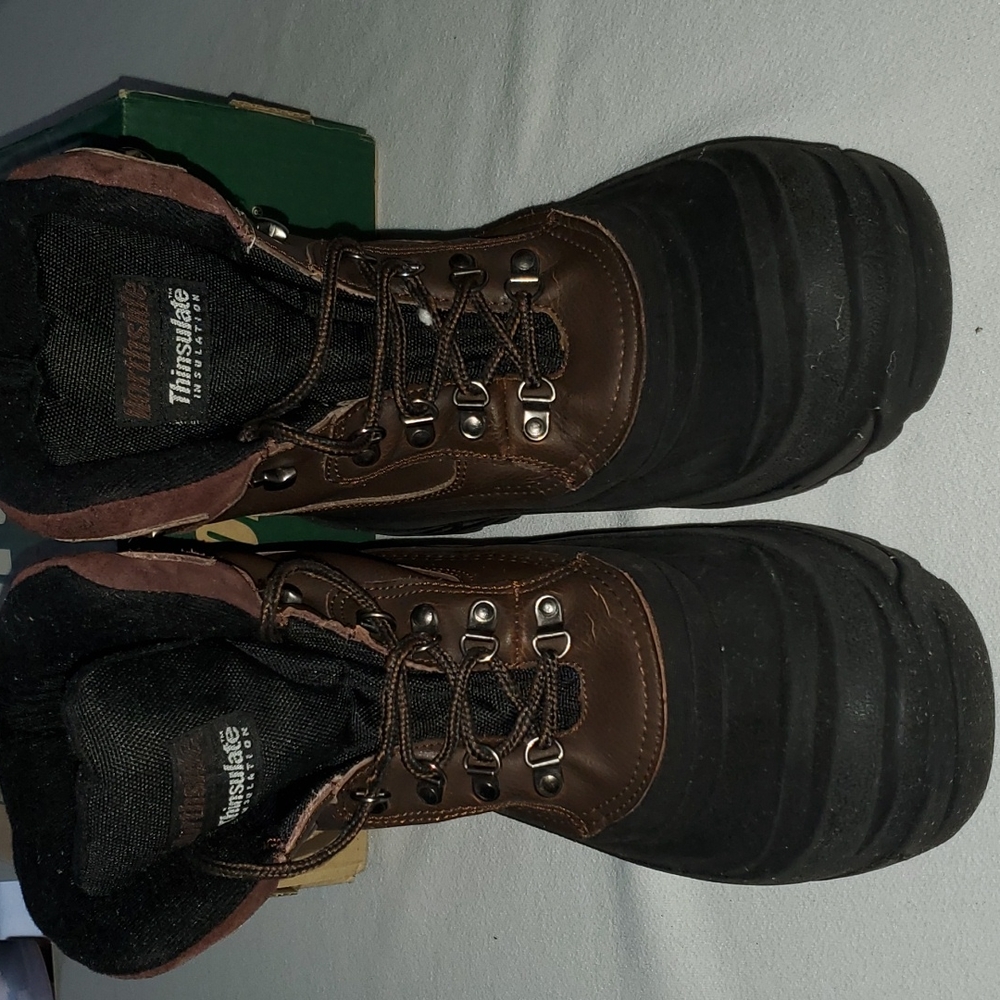 like new worn maybe once. still in box Northside size 12 I insulated brown boot. aggressive tred. one shoelace has split. otherwise these are like new. very warm.