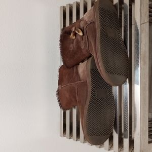 Brown cozie steps, water repellent sheepskin, genuine sheepskin.