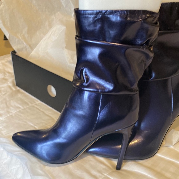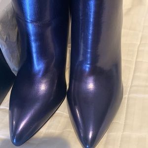 Dark blue boot Jenn bootie. Solid color but has a sheen/siloutte to it Pointed toe. Tapered high heeled. 4.13 inches