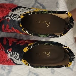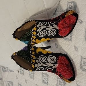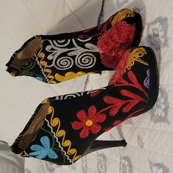 Scarlet embroidered booties. Size 36 (5 womans US). Made in India. 4.5 inch heels. Worn 2 times. Excellent condition.