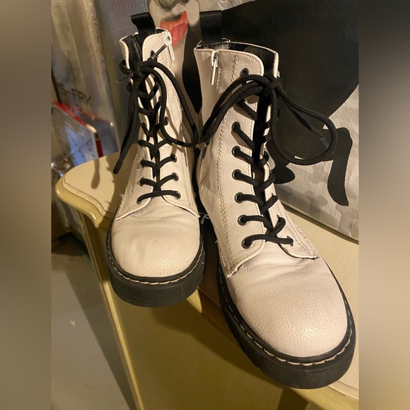 White combat boots in great shape! Zipper on inside to make them easy to put on/take off. Lightly worn.