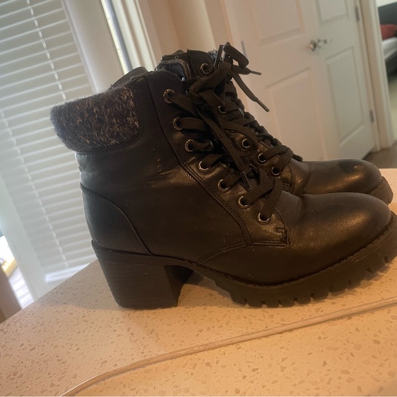 A bit more worn than my other stuff. Cute mid boots with a heel. Comfy but my feet don’t fit in them anymore.
