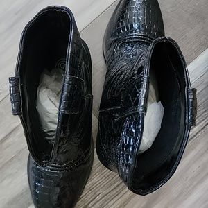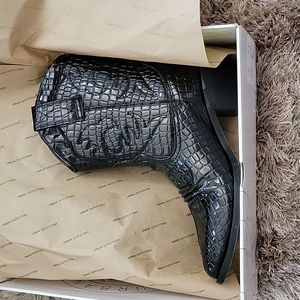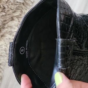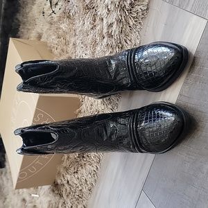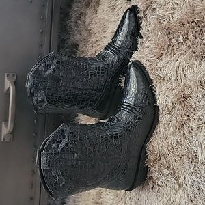 Urban outfitters size 8 women's black cowboy boots 🤠 in a Shiney patent leather with a pattern stitched onto the snake skin texture. new with box.