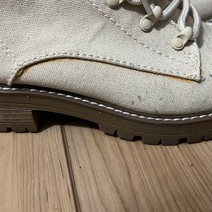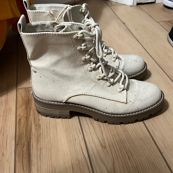 Cream colored boots. Only worn once. Dusty from not being worn but can be wiped off.