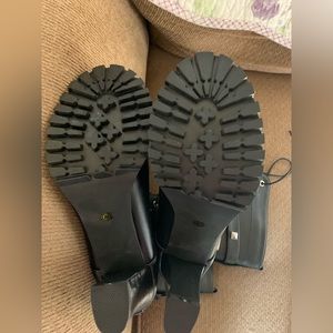 Black leather. Zipper sides. Lace sides. Never worn. Removable straps.