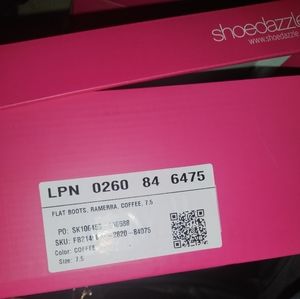 Brand new from shoe dazzle, ramera coffee colored boots with a removable coin pouch. Never worn size 7.5 They have kinda of a lug heal about them