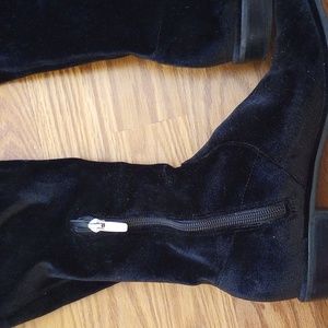 velvet black knee high boots are very comfortable and stylish. These boots will make any wardrobe dressy. boots are in excellent condition, a must have.