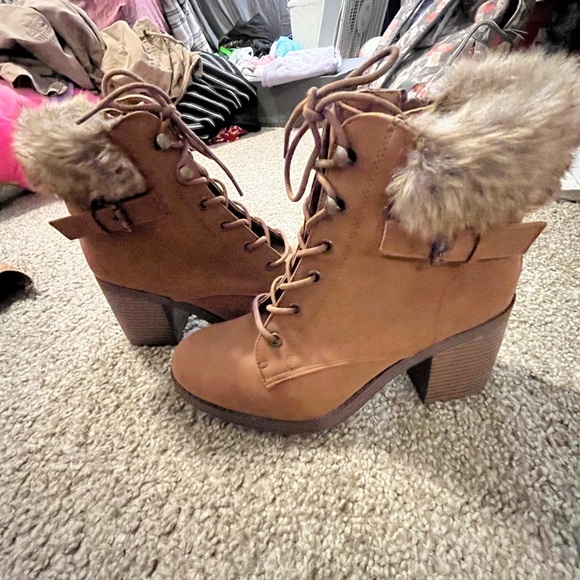 Brown boots with fur on top worn one time