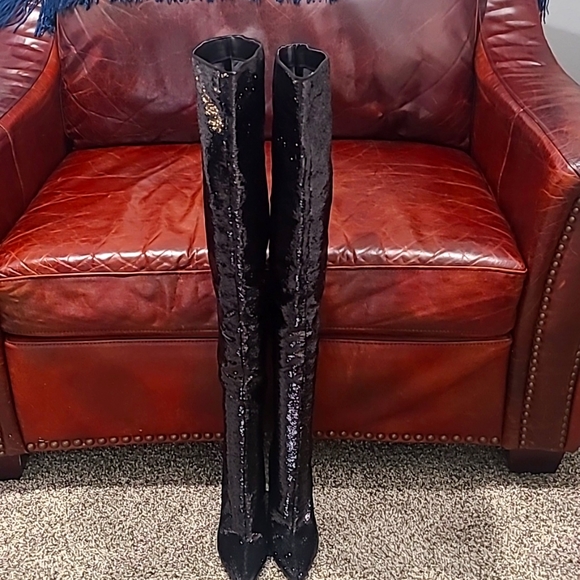 Sexy black thigh-high sequins boots only worn once.