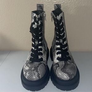 Dolce Vita (DV) leather, lace-up, snake print combat boot