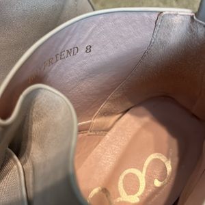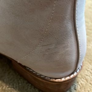 Beige booties. Worn several times, review all photos for scuff marks.