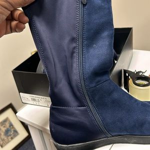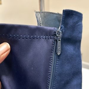 Suede and that stretchy material in the back.